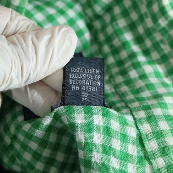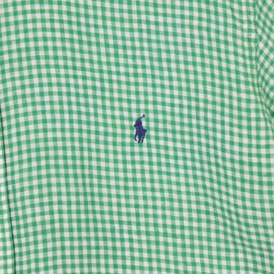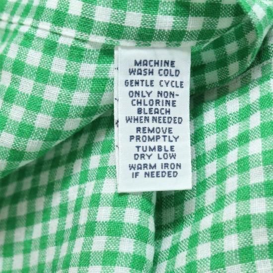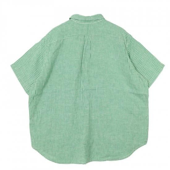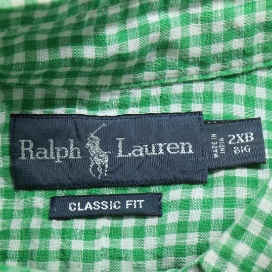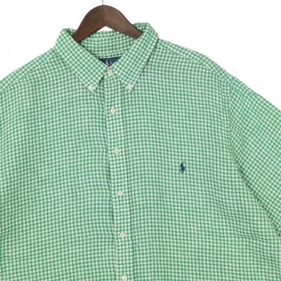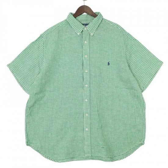 00's ラルフローレン 100%リネン 半袖ボタンダウンシャツ メンズUS-2XB ギンガムチェック 緑白 hsc-0750n