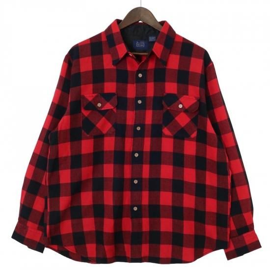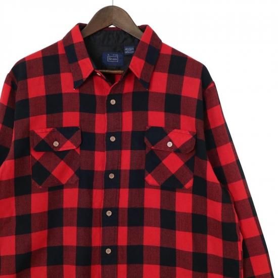 80's Sears バッファローチェック柄 長袖アクリルシャツ 大きいサイズ古着 メンズUS-XLサイズ sc-0742