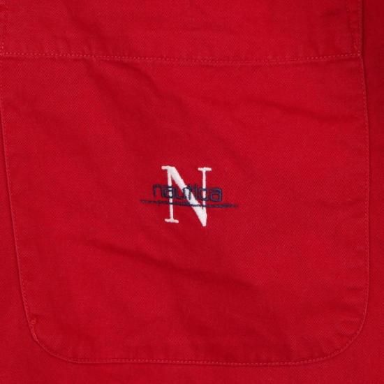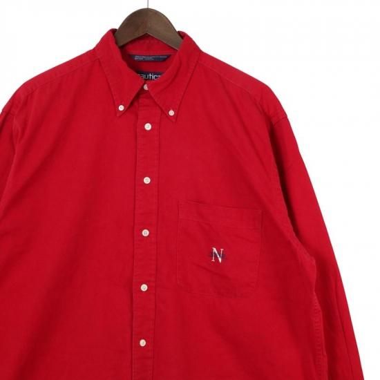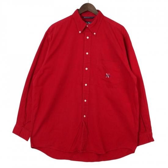 90's ノーティカ 長袖ボタンダウンシャツ 大きいサイズ古着 メンズUS-Lサイズ 無地 赤 レッド系 sc-0746n