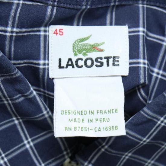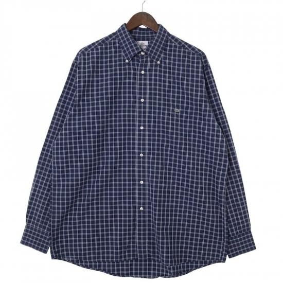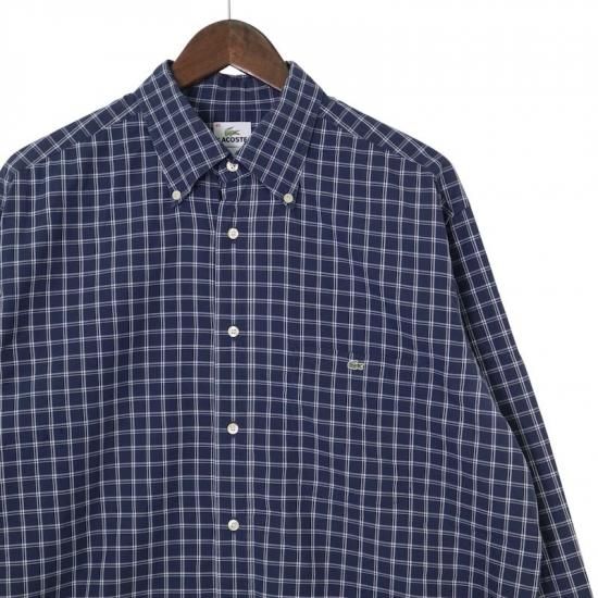 ラコステ 長袖ボタンダウンシャツ 大きいサイズ古着 メンズUS-3XLサイズ チェック柄 ネイビー系 sc-0747n