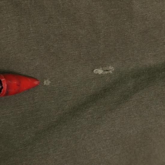 後ろ右上にごくわずかな小さな穴がございます。着用に問題はございません。