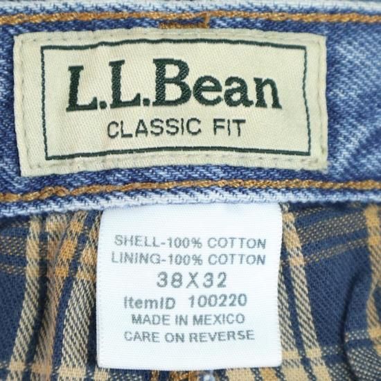 L.L.Bean エルエルビーン 5ポケット デニムパンツ チェック柄裏地付き メンズW38 ブルー hpc-0078