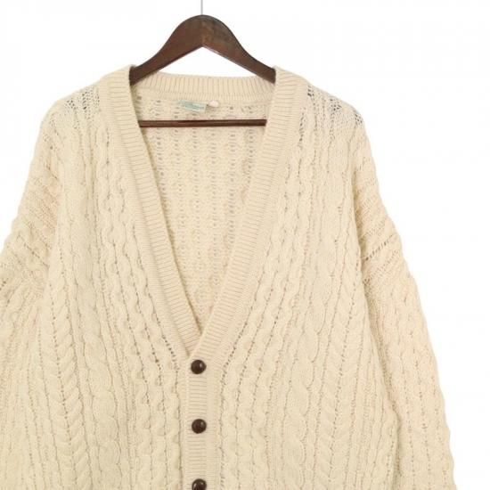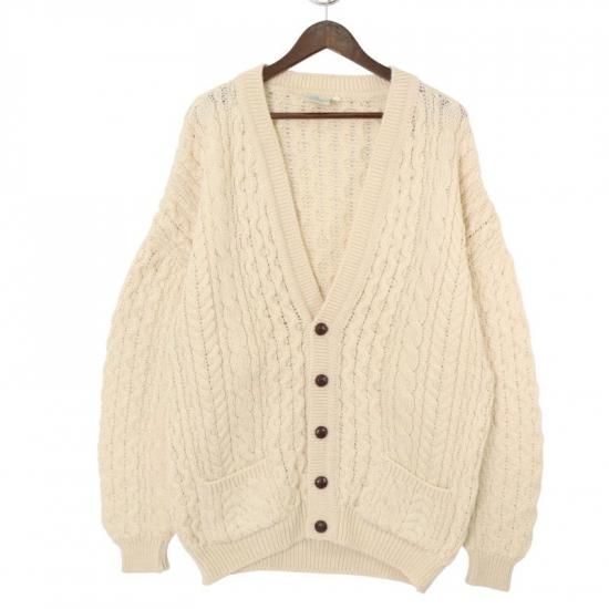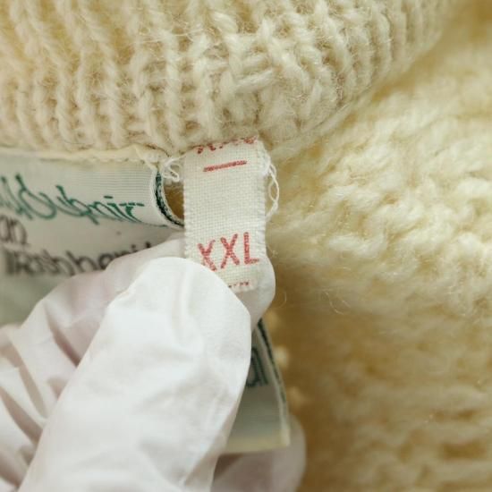SCOTLAND製 Cladyknit アランニット ウールケーブルカーディガン メンズXXL ナチュラル hsc-0837