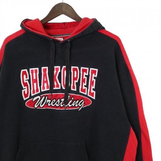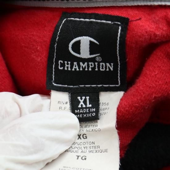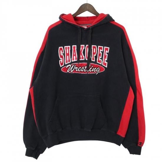 Champion チャンピオン スウェットパーカー メンズUS-XL ブラック レッド ワッペンロゴ hsc-0843