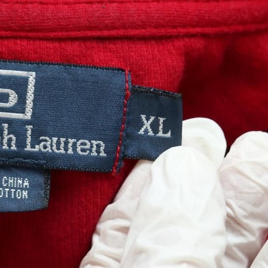 00's ポロラルフローレン ハーフジップコットンニットプルオーバー メンズUS-XLレッド hsc-0846
