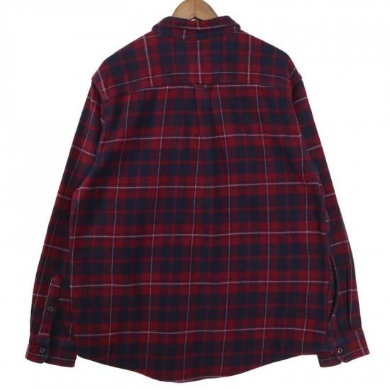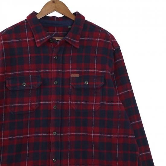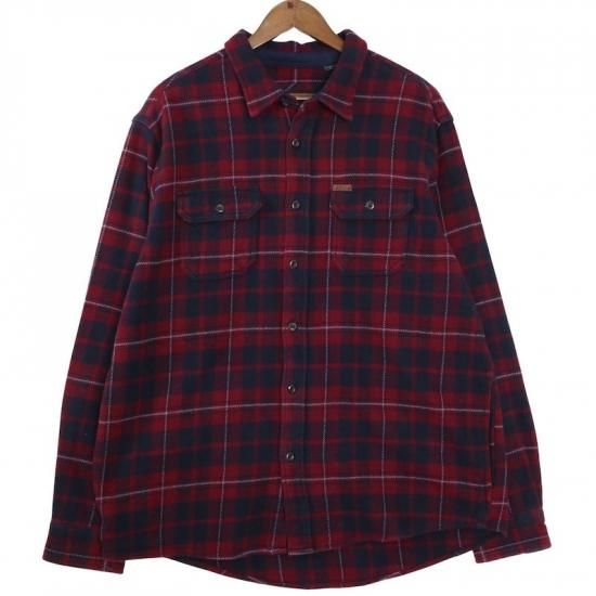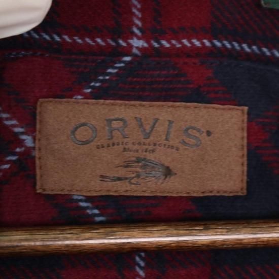 ORVIS オービス 長袖ヘビーネルシャツ メンズXL チェック ボルドー ネイビー ハンドポケット hsc-0855