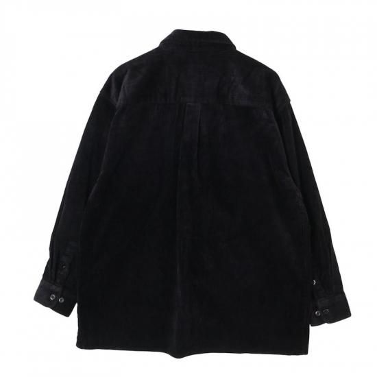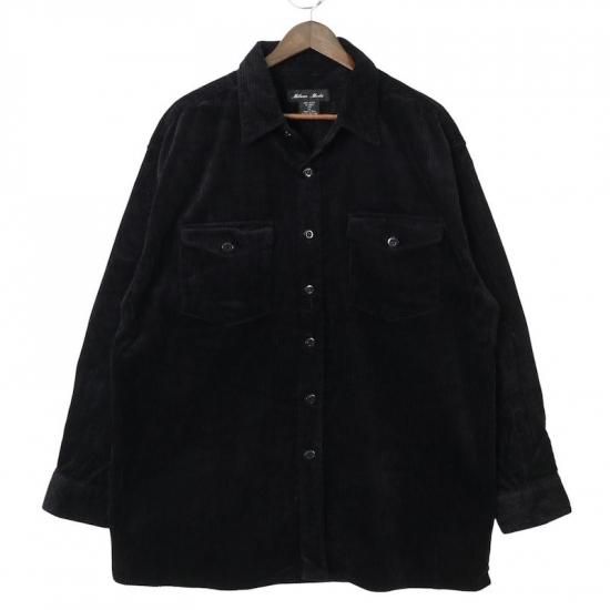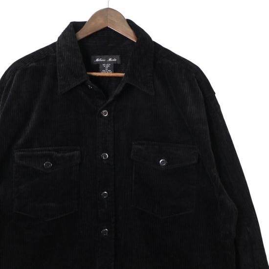Milano Moda 長袖コーデュロイシャツ ボックス裾 メンズUS-XXL 太畝 ブラック hsc-0869
